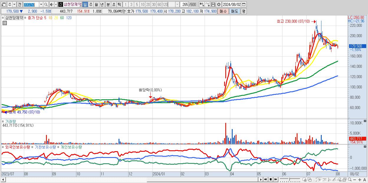 - 삼천당제약 (179,500원 ▼ -1.59% , 시총: 42,106억, 외국인 순매수 거래금:87억)
