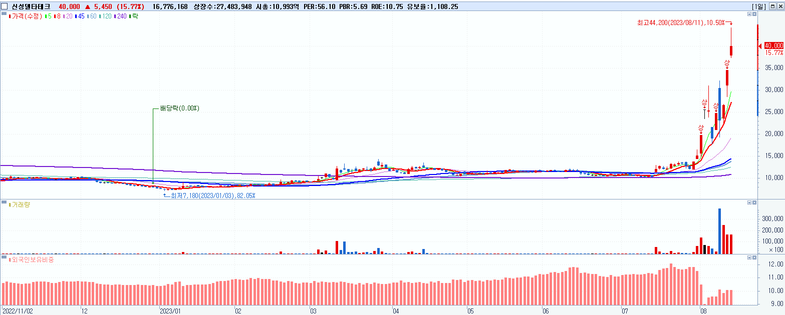 - 신성델타테크 (15.77%, 시총: 10,994억, 거래량: 16,858,311, 거래대금:6,841억)
