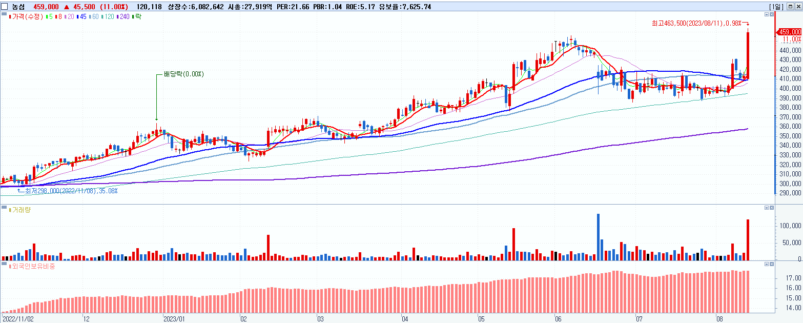 30.농심 459,000원 ▲ 11% (KOSPI, 004370)