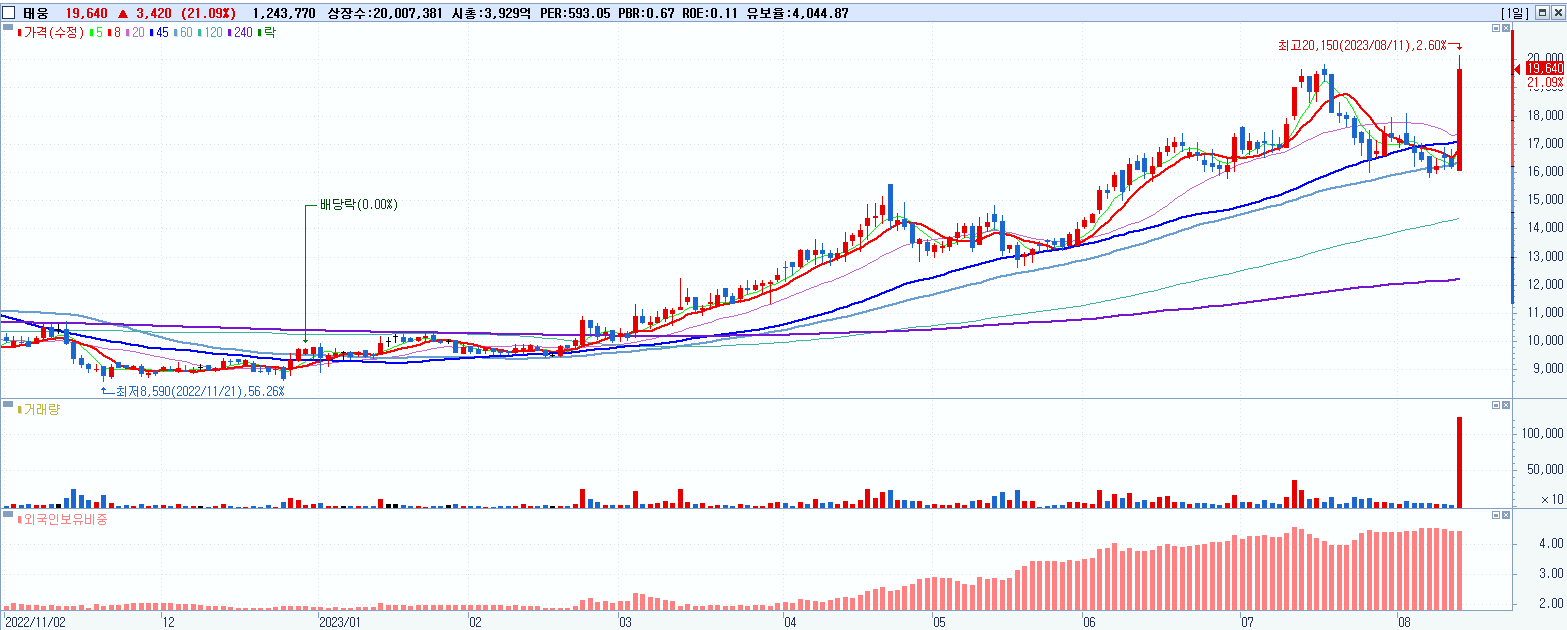 | 권리락(무상증자) | 2023-08-09 |