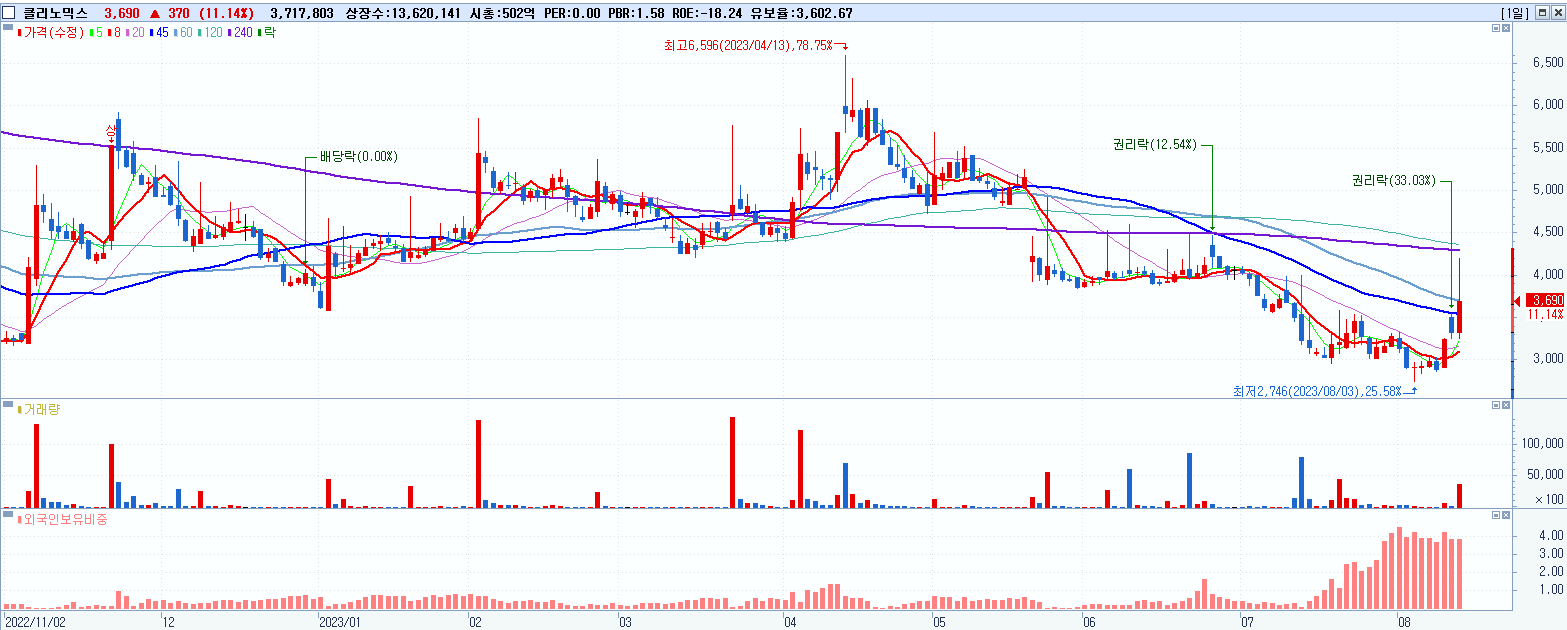 29.클리노믹스 3,690원 ▲ 11.14% (KOSDAQ, 352770)