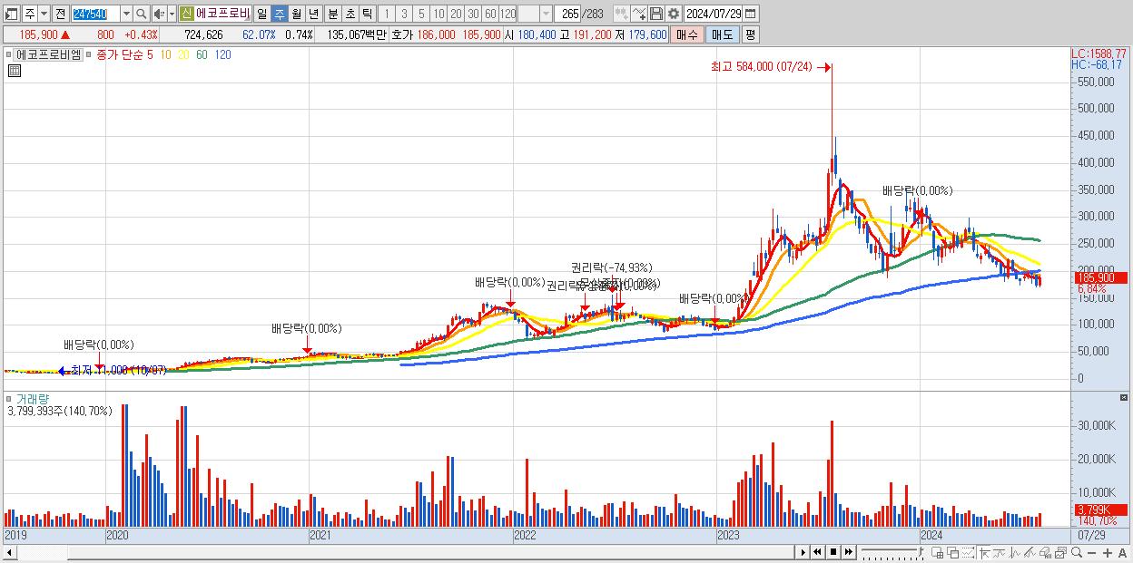 - 에코프로비엠 (185,900원 ▲ 6.84% , 시총: 181,813억, 거래량: 3,799,393, 거래대금:6,922억)