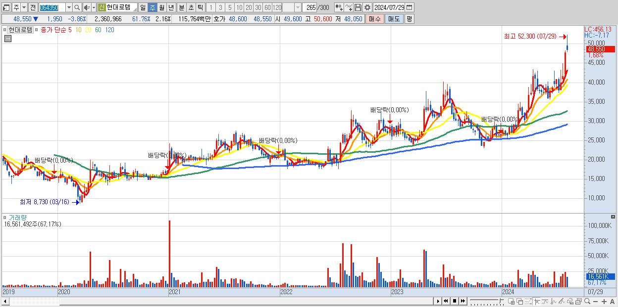 - 현대로템 (48,550원 ▲ 1.68% , 시총: 52,989억, 거래량: 16,561,492, 거래대금:8,275억)