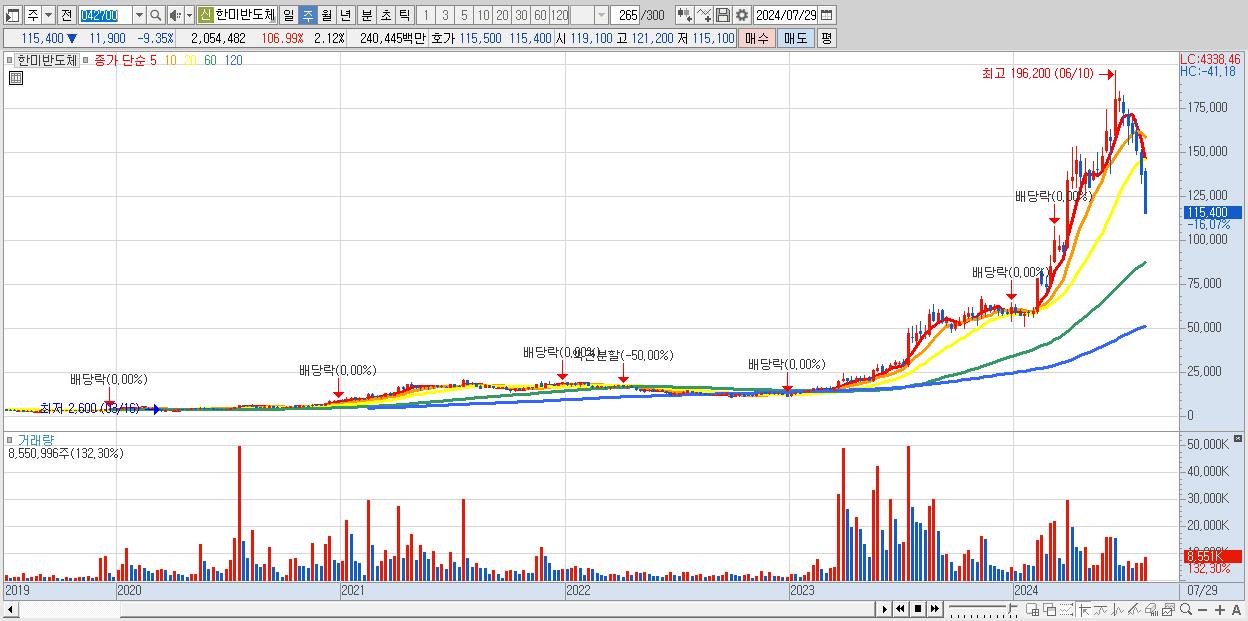 - 한미반도체 (115,400원 ▼ -16.07% , 시총: 111,931억, 거래량: 8,550,996, 거래대금:10,848억)