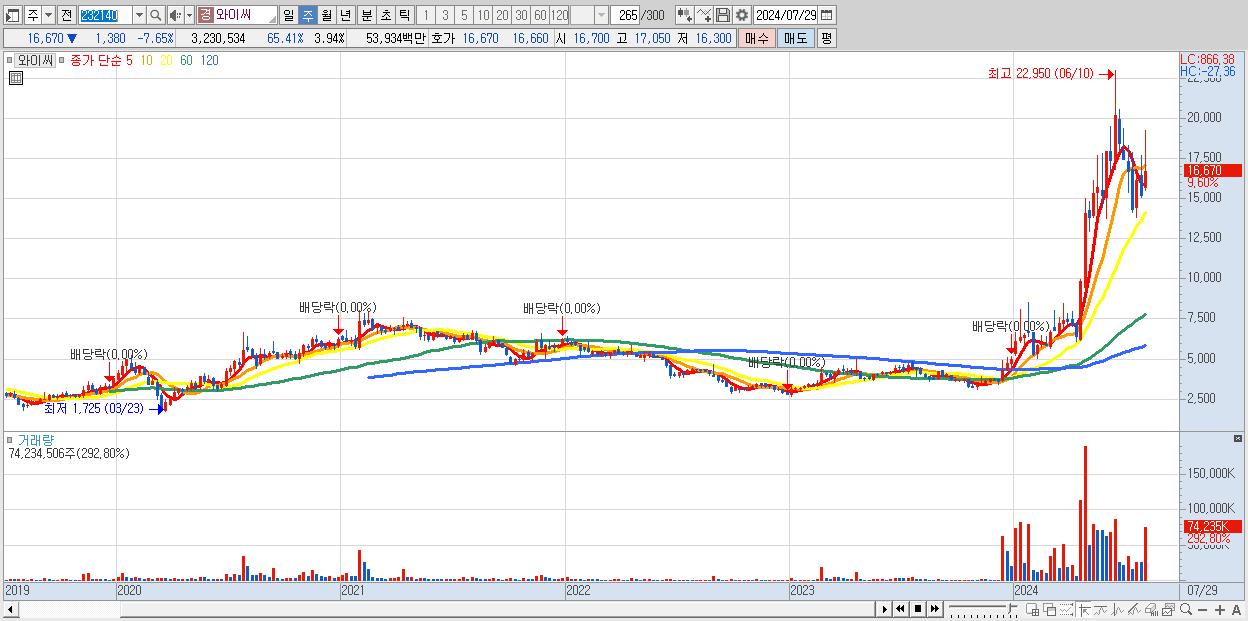 - 와이씨 (16,670원 ▲ 9.6% , 시총: 13,677억, 거래량: 74,234,506, 거래대금:13,275억)