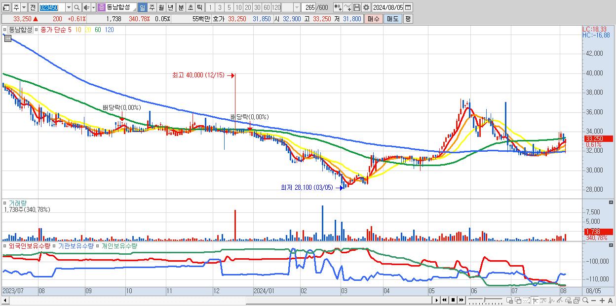 - 동남합성 (33,250원 ▲ 0.61% , 시총: 1,164억, 거래량: 1,738, 거래대금:1억)
