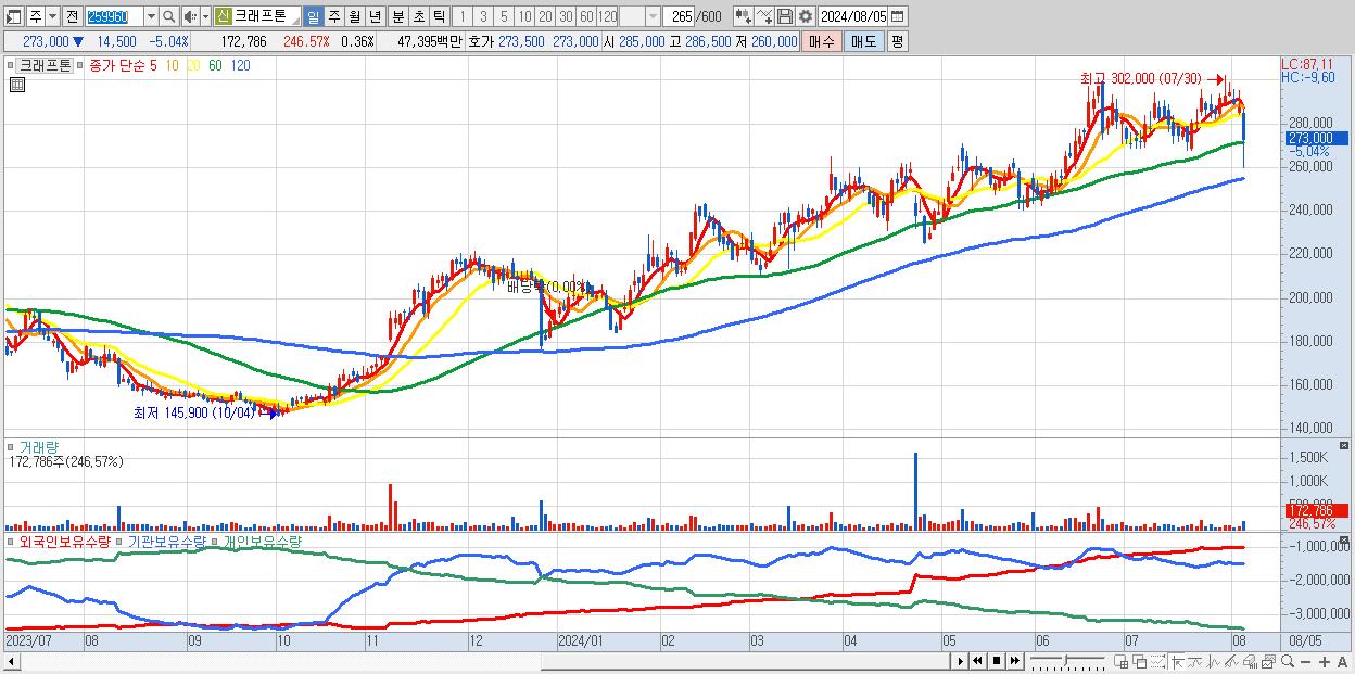 | 2024-08-05 | 82억 | -1억 | -7억 | -1억 | -73억 |