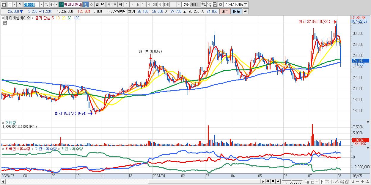 30.에이비엘바이오 25,050원 ▼ -11.33% (KOSDAQ, 298380)
