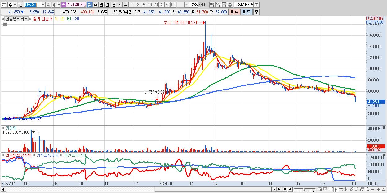 - 신성델타테크 (41,250원 ▼ -17.83% , 시총: 11,337억, 외국인 순매수 거래금:132억)