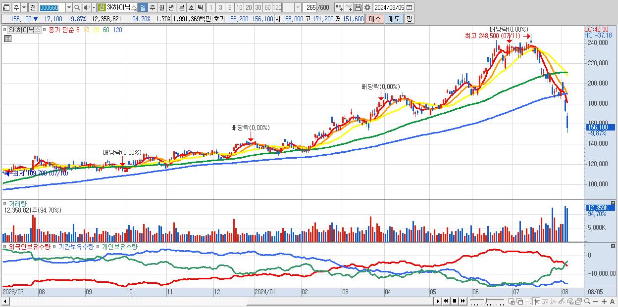 2.SK하이닉스 156,100원 ▼ -9.87% (KOSPI, 000660)