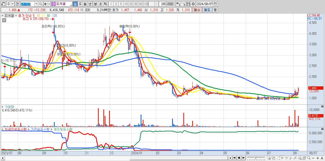 30.피씨엘 1,466원 ▲ 13.29% (KOSDAQ, 241820)