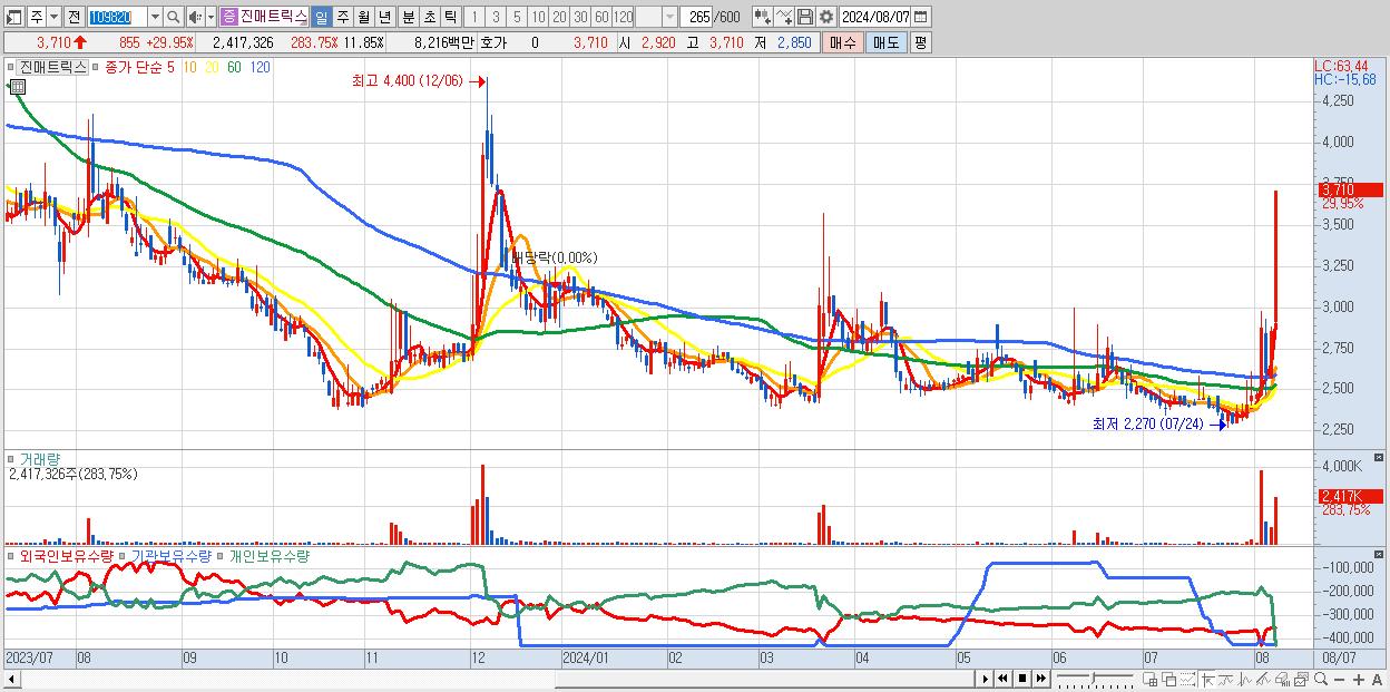 2.진매트릭스 3,710원 ▲ 29.95% (KOSDAQ, 109820)