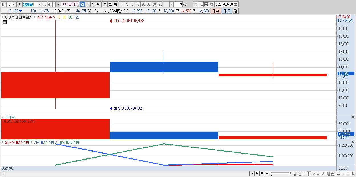 - 아이빔테크놀로지 (13,190원 ▼ -1.27% , 시총: 1,974억, 거래량: 10,345,165, 거래대금:1,416억)