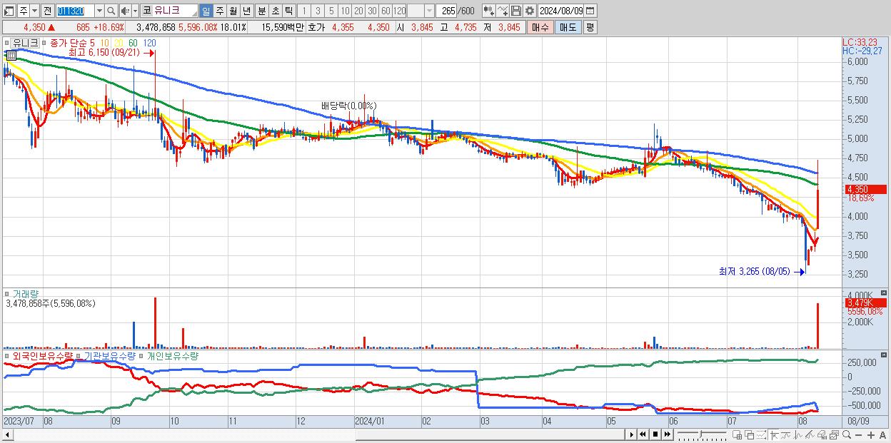 - 유니크 (4,350원 ▲ 18.69% , 시총: 840억, 거래량: 3,478,858, 거래대금:156억)