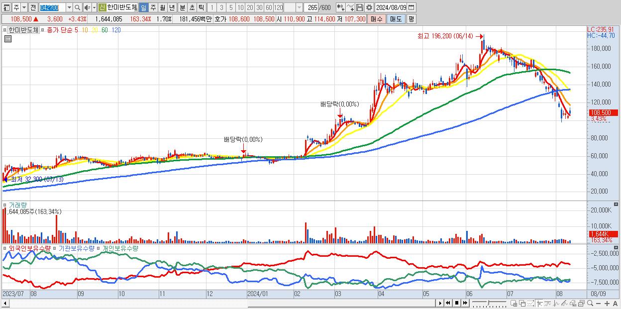 - 한미반도체 (108,500원 ▲ 3.43% , 시총: 105,238억, 거래량: 1,644,085, 거래대금:1,815억)