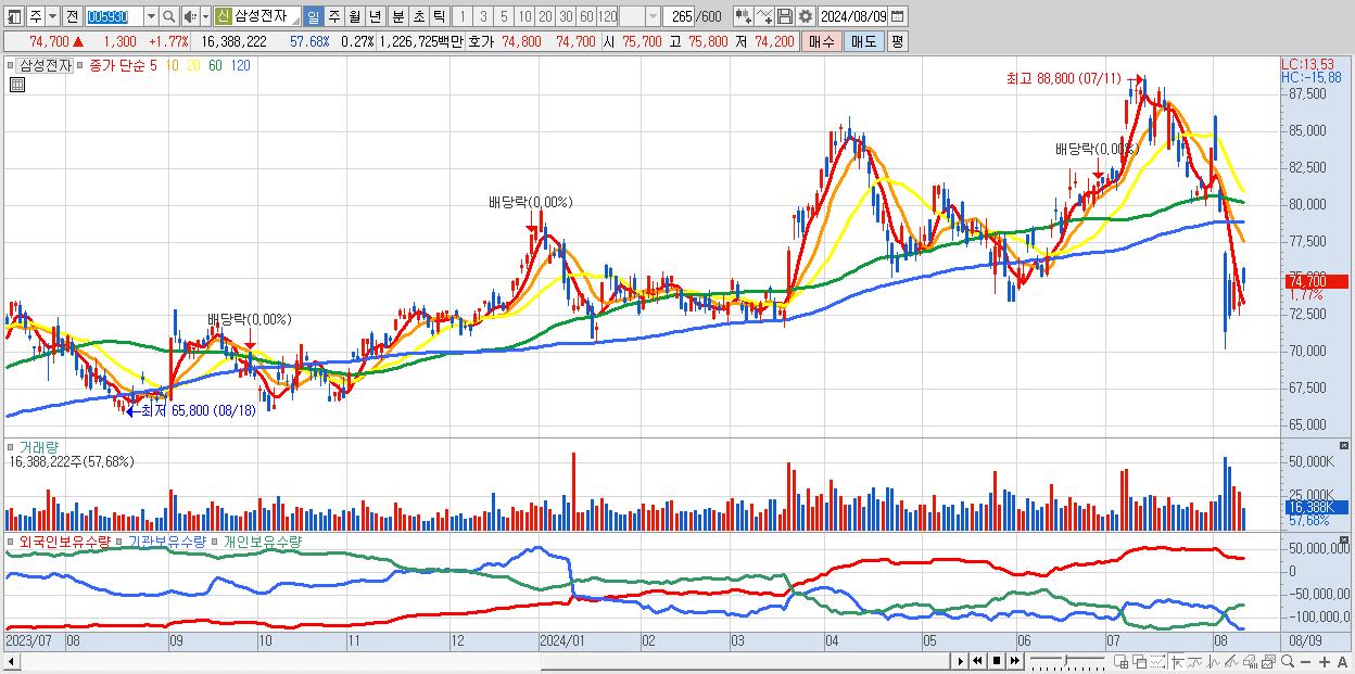 1.삼성전자 74,700원 ▲ 1.77% (KOSPI, 005930)