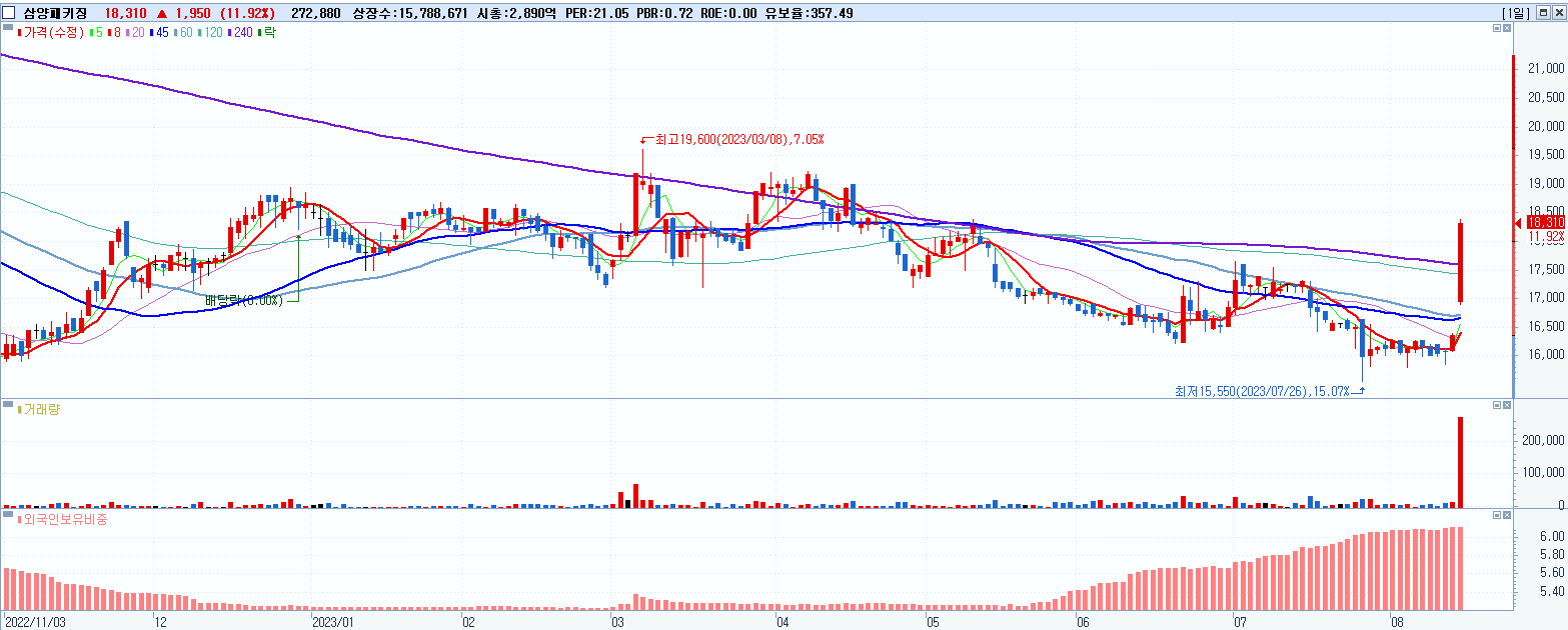 30.삼양패키징 18,310원 ▲ 11.92% (KOSPI, 272550)