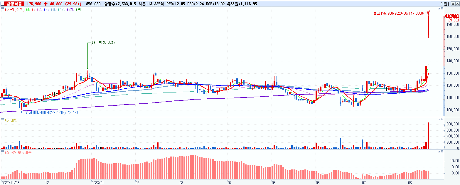 [특징주] 2분기 호실적에 부회장 사면 겹친 삼양식품 상한가
