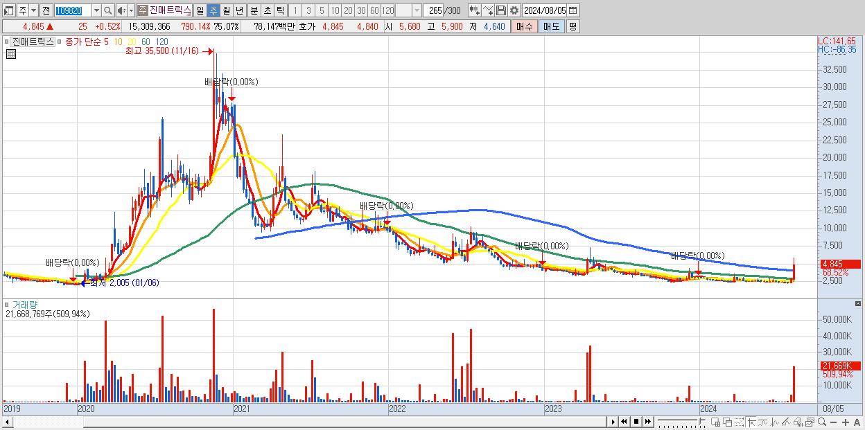 1.진매트릭스 4,845원 ▲ 68.52% (KOSDAQ, 109820)