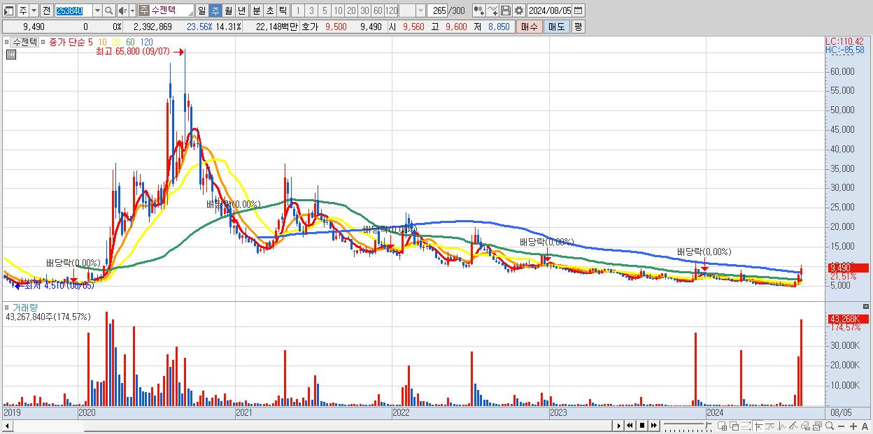 - 수젠텍 (9,490원 ▲ 21.51% , 시총: 1,587억, 거래량: 43,267,840, 거래대금:3,899억)