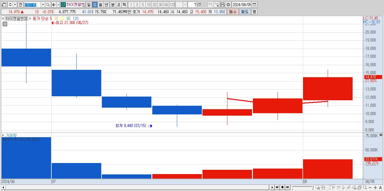 - 하이젠알앤엠 (14,470원 ▲ 21.8% , 시총: 4,469억, 거래량: 33,871,411, 거래대금:4,593억)