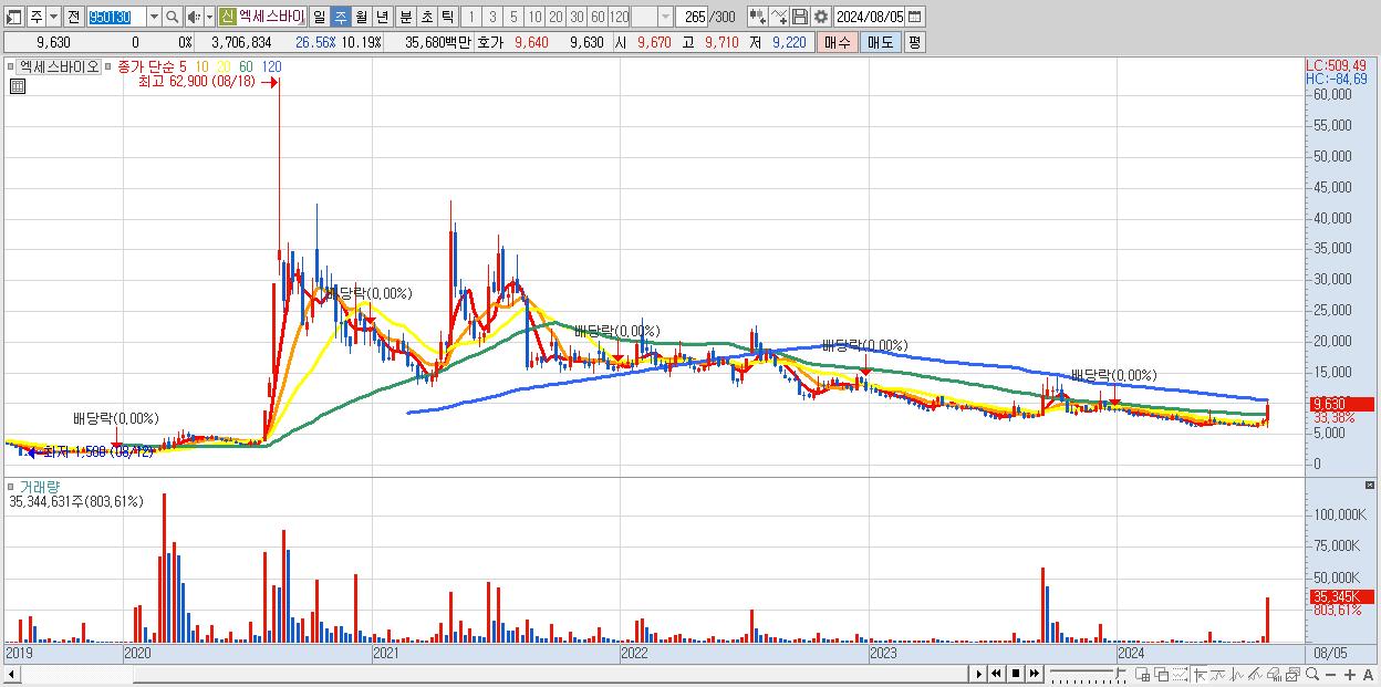 - 엑세스바이오 (9,630원 ▲ 33.38% , 시총: 3,502억, 거래량: 35,344,631, 거래대금:3,206억)