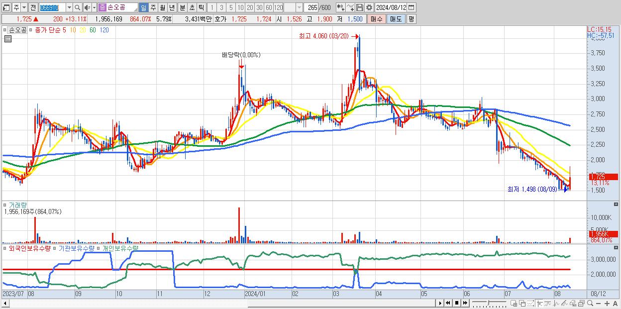 - 손오공 (1,725원 ▲ 13.11% , 시총: 583억, 거래량: 1,956,169, 거래대금:34억)