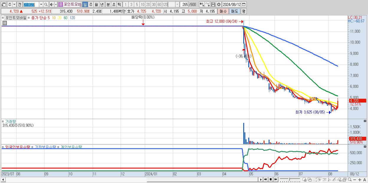 - 포인트모바일 (4,720원 ▲ 12.51% , 시총: 598억, 거래량: 315,430, 거래대금:15억)