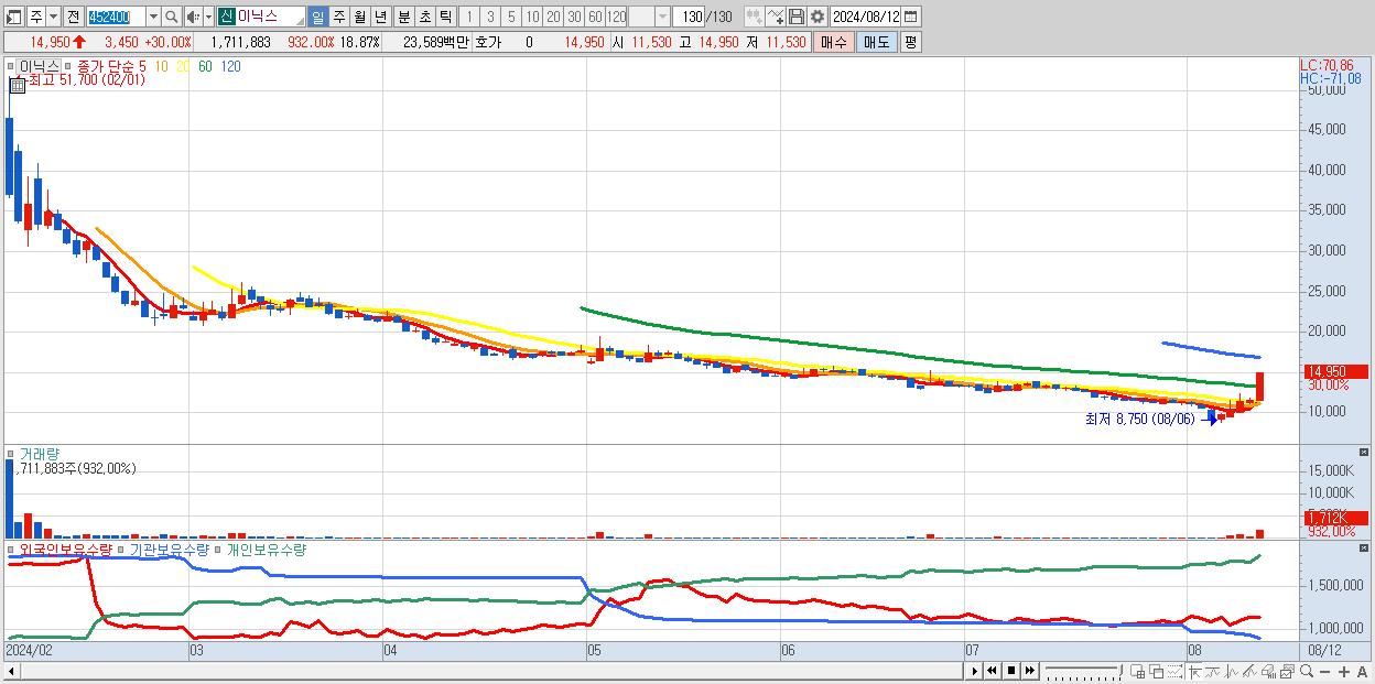 2.이닉스 14,950원 ▲ 30% (KOSDAQ, 452400)