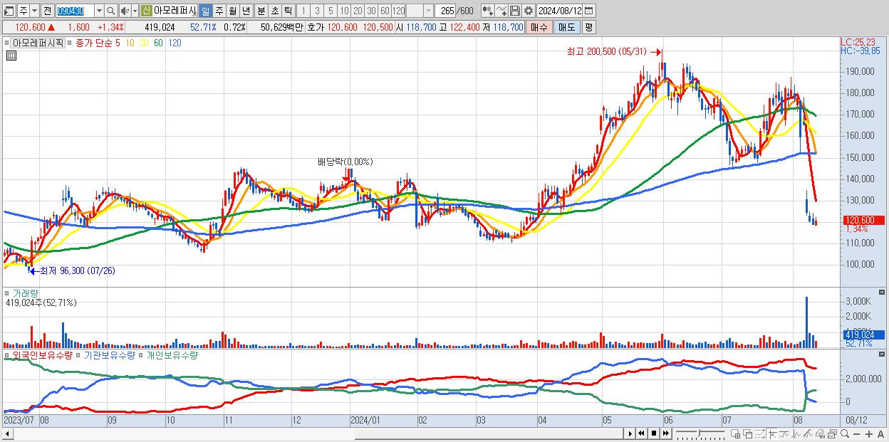 30.아모레퍼시픽 120,600원 ▲ 1.34% (KOSPI, 090430)