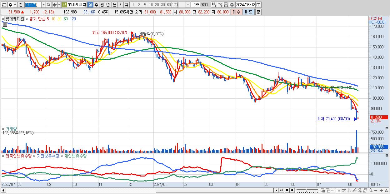 - 롯데케미칼 (81,500원 ▲ 2.13% , 시총: 34,862억, 외국인 순매수 거래금:50억)