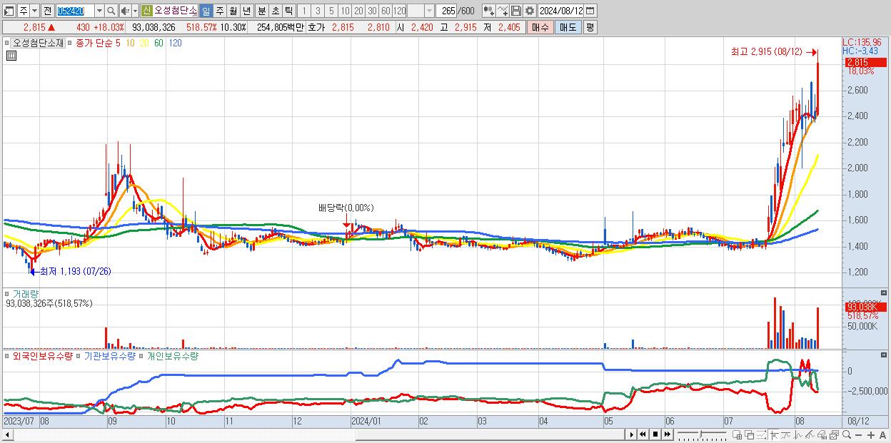 오성첨단소재 2,815원 ▲ 18.03% (KOSDAQ, 052420)