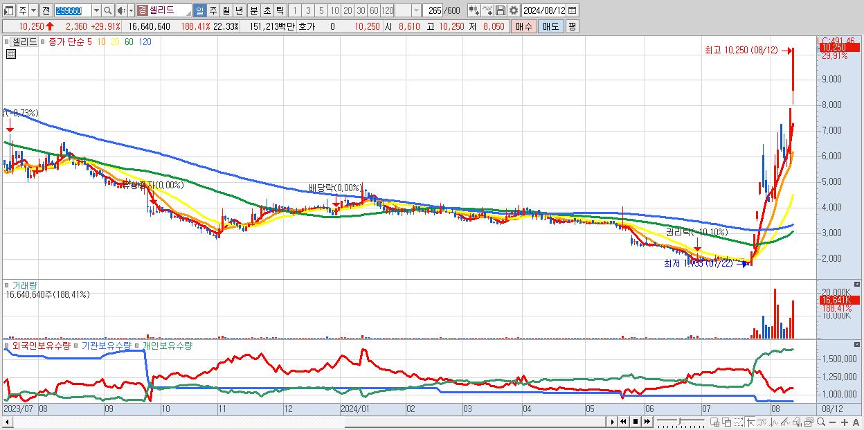 셀리드 10,250원 ▲ 29.91% (KOSDAQ, 299660)