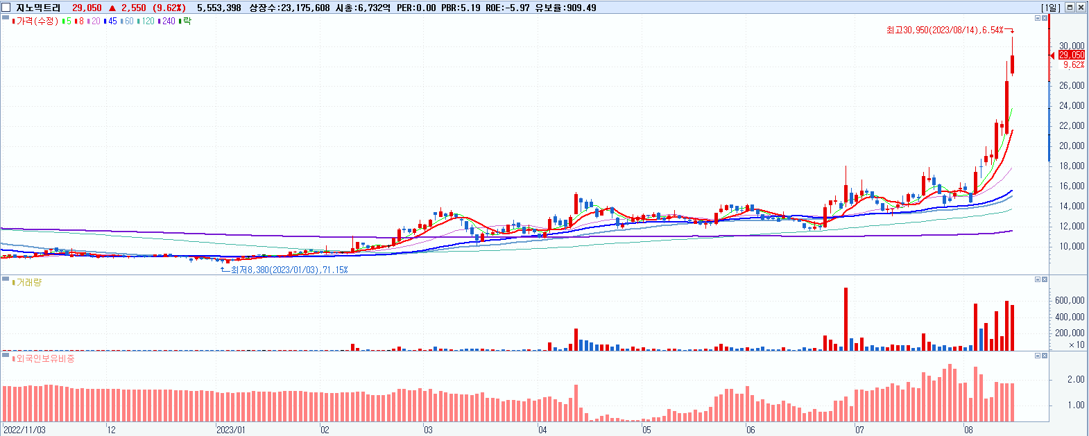시총: 19,173억 거래량: 14,734,877 거래대금:5,222억