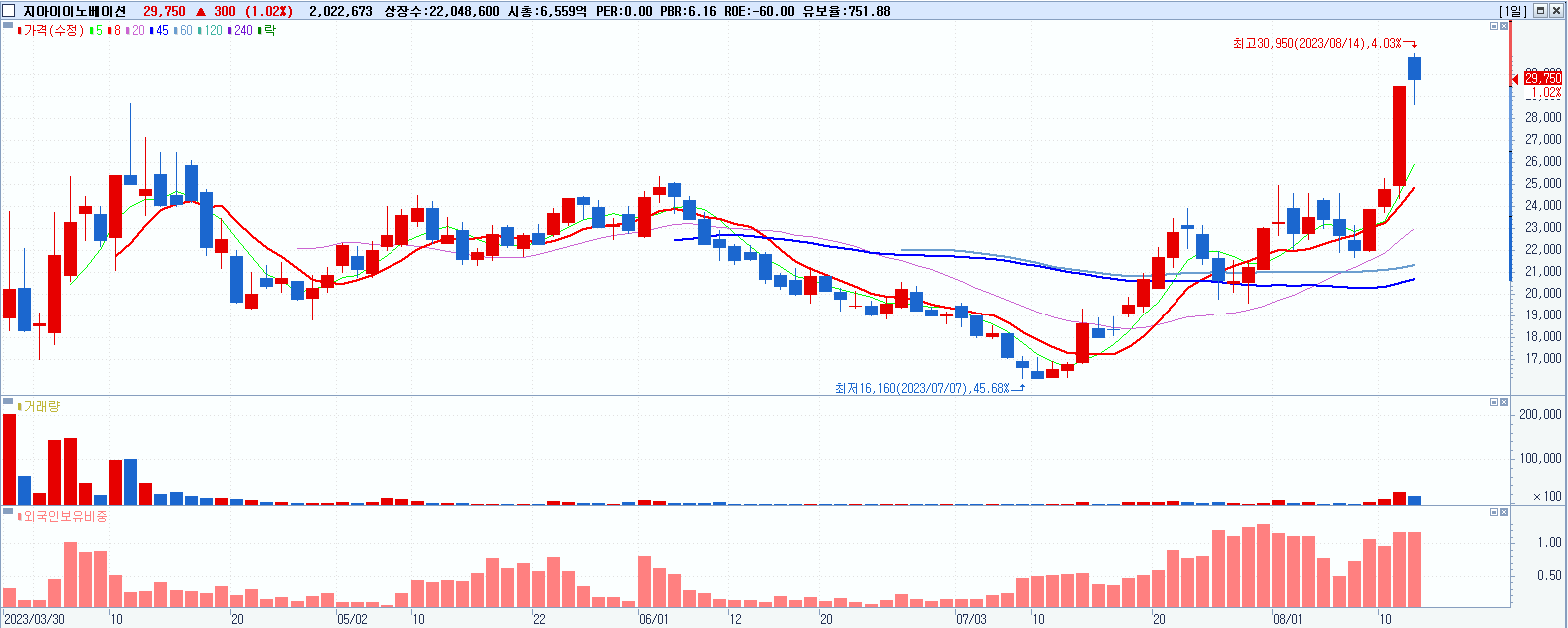 지아이이노베이션 29,750원 ▲ 1.02% (KOSDAQ, 358570)