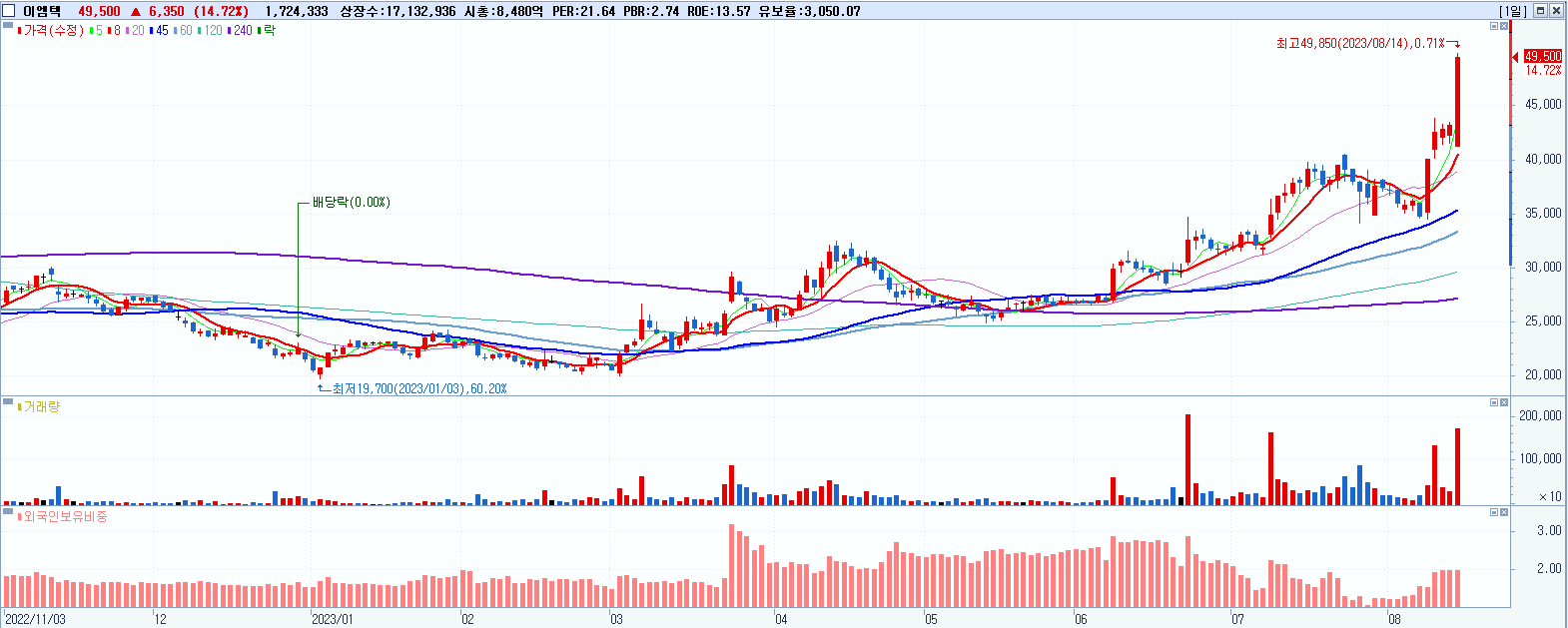 | 52주 신고가 종목 정리(2023년 8월 22일) 종가기준 (2) | 2023.08.22 |