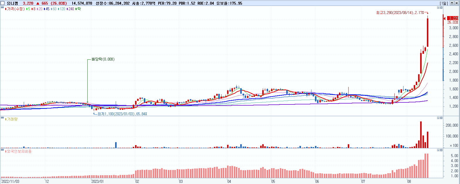 시총: 3,250억 거래량: 188,445 거래대금:49억