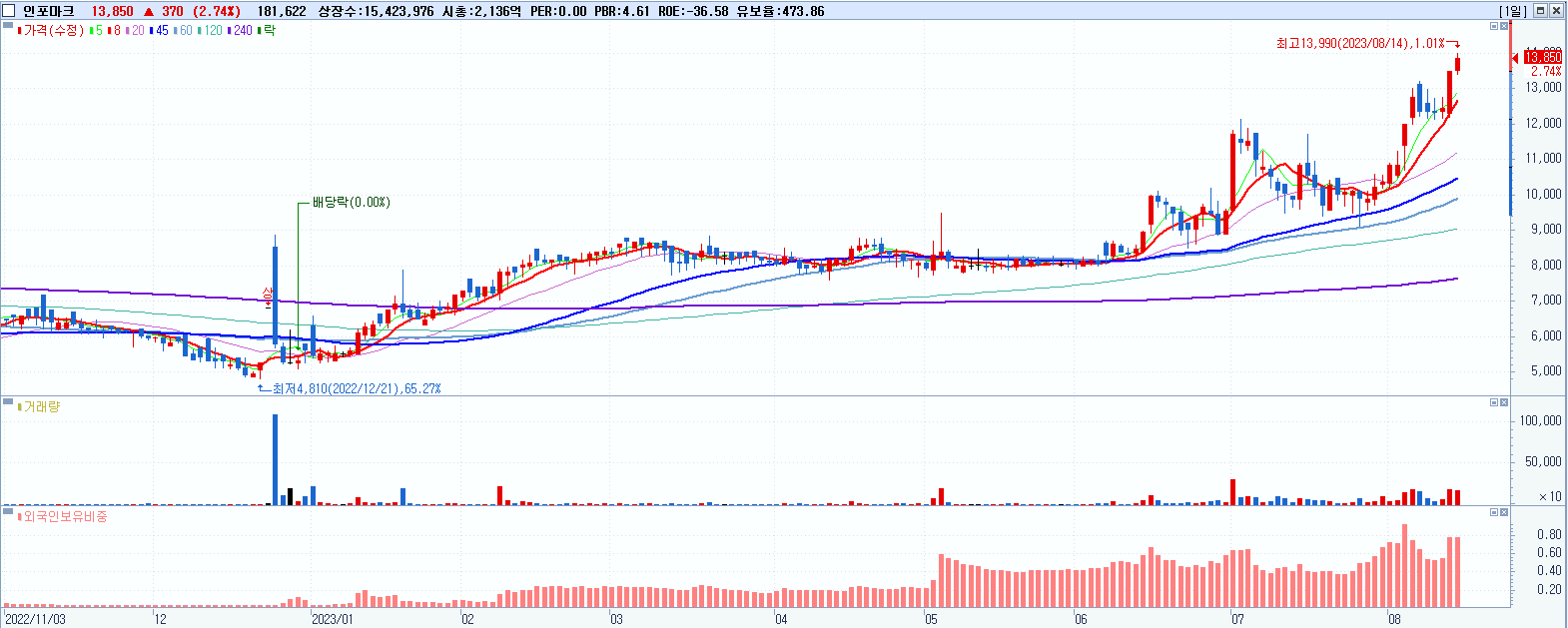 인포마크 13,850원 ▲ 2.74% (KOSDAQ, 175140)