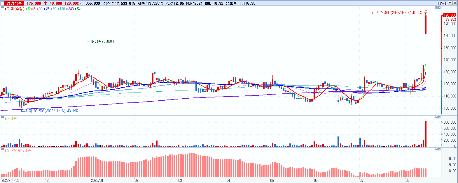 삼양식품 176,900원 ▲ 29.98% (KOSPI, 003230)