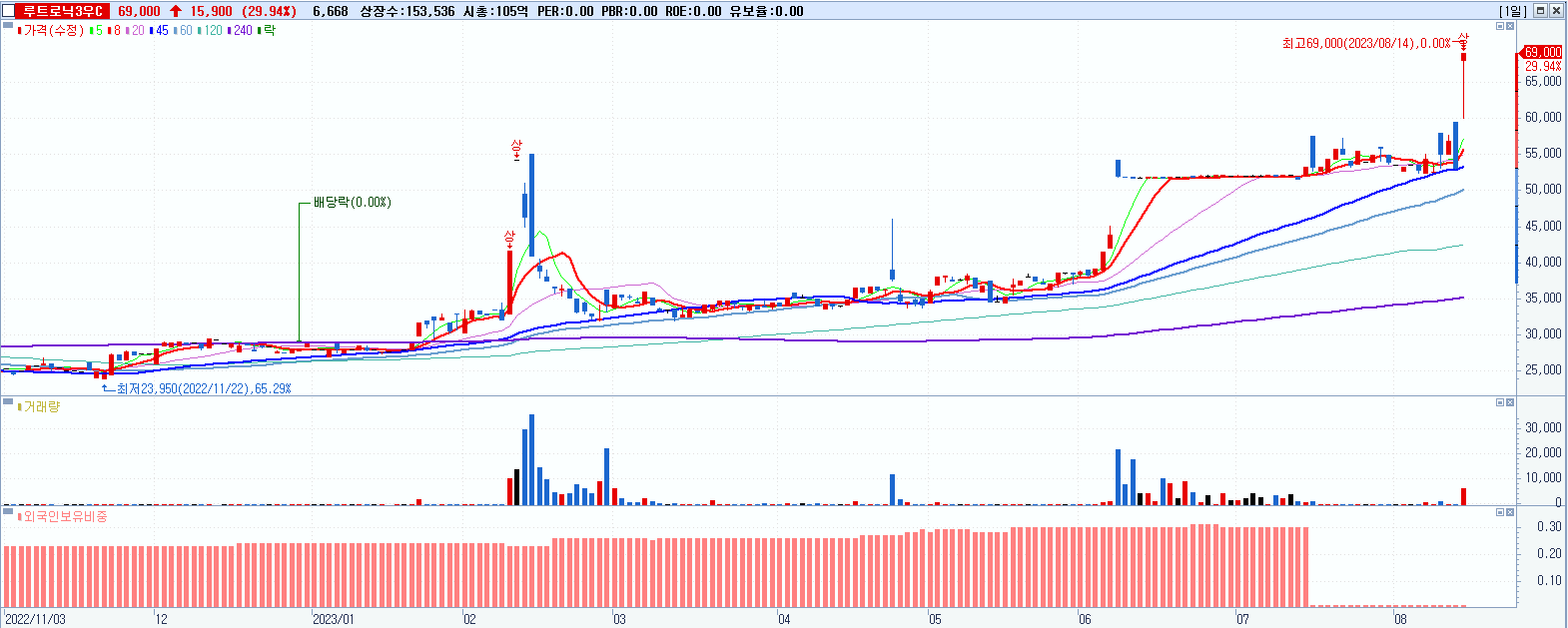 루트로닉3우C 69,000원 ▲ 29.94% (KOSDAQ, 08537M)