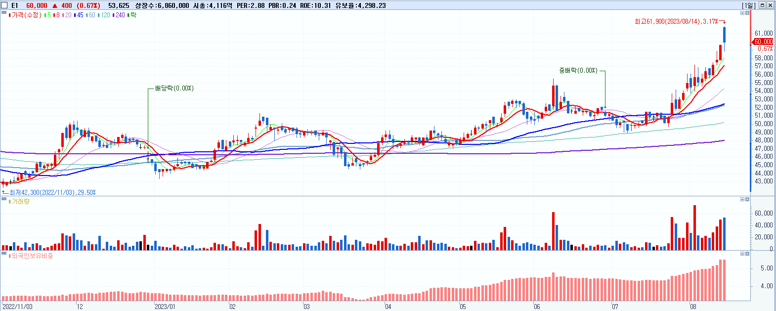 E1 60,000원 ▲ 0.67% (KOSPI, 017940)