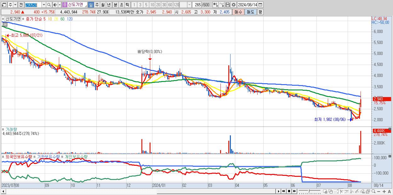 - 신도기연 (2,940원 ▲ 15.75% , 시총: 468억, 거래량: 4,443,944, 거래대금:135억)