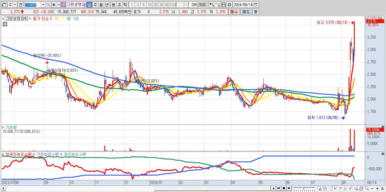 2.그린생명과학 3,575원 ▲ 30% (KOSDAQ, 114450)