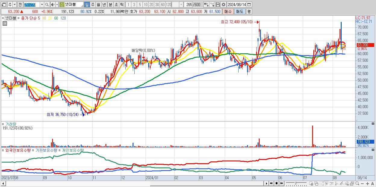 - 넷마블 (63,200원 ▲ 0.96% , 시총: 54,323억, 외국인 순매수 거래금:51억)