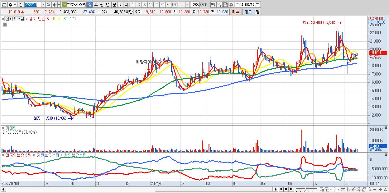 - 한화시스템 (19,610원 ▲ 2.72% , 시총: 37,047억, 외국인 순매수 거래금:137억)