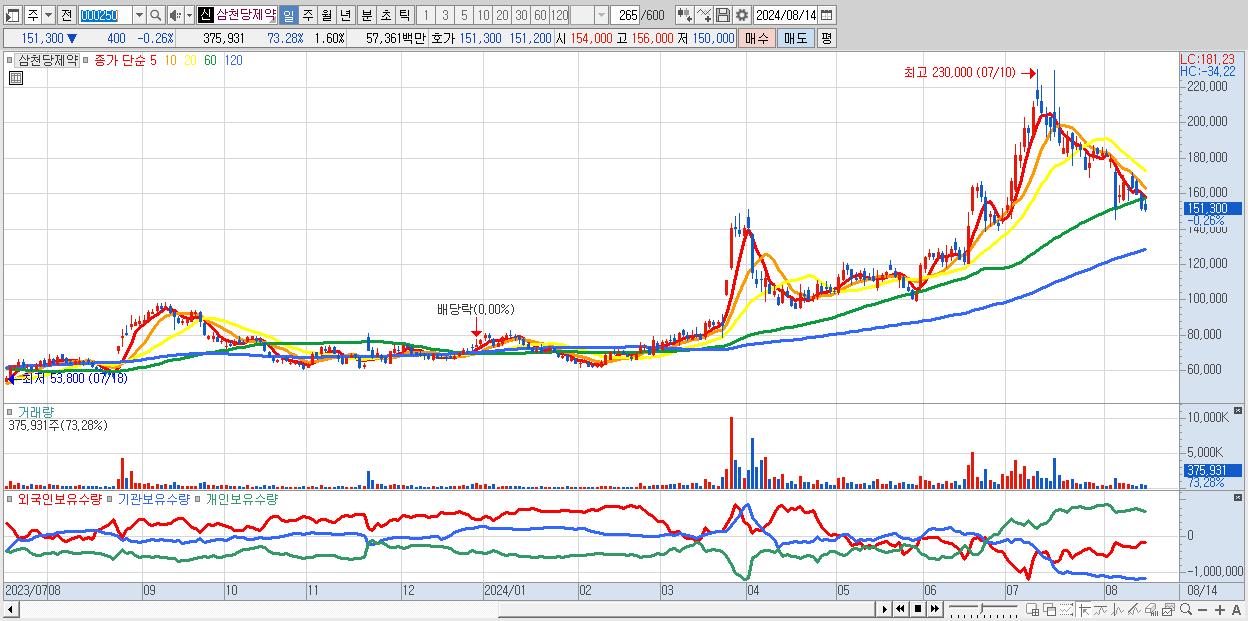 - 삼천당제약 (151,300원 ▼ -0.26% , 시총: 35,491억, 외국인 순매수 거래금:73억)