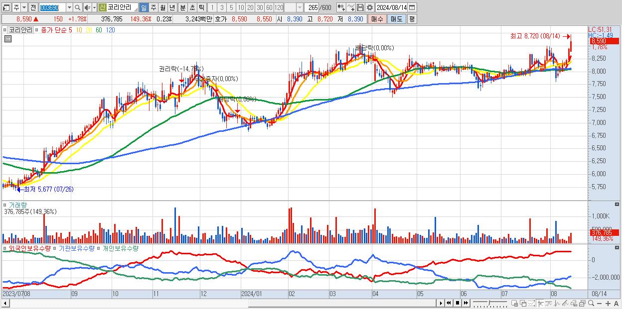 코리안리 8,590원 ▲ 1.78% (KOSPI, 003690)