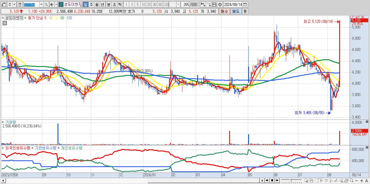 성도이엔지 5,120원 ▲ 29.95% (KOSDAQ, 037350)