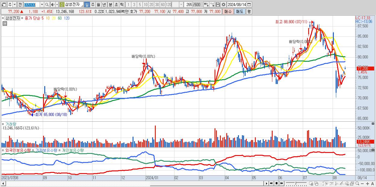 1.삼성전자 77,200원 ▲ 1.45% (KOSPI, 005930)