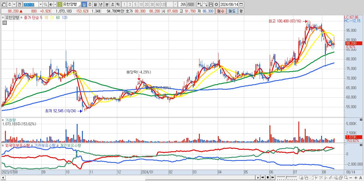 30.유한양행 88,200원 ▲ 0.92% (KOSPI, 000100)